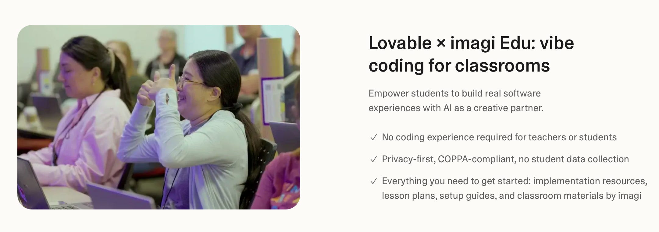 Imagi/OpenAI Partnership - Bringing Lovable to schools. Education was Replit’s initial audience too. Different use case than professional development.
